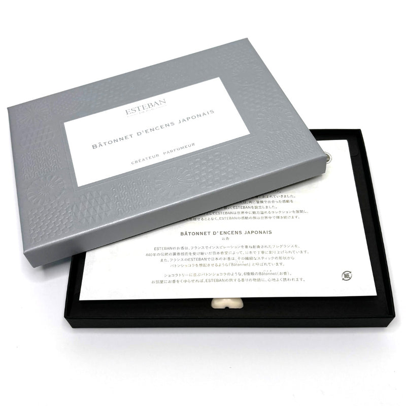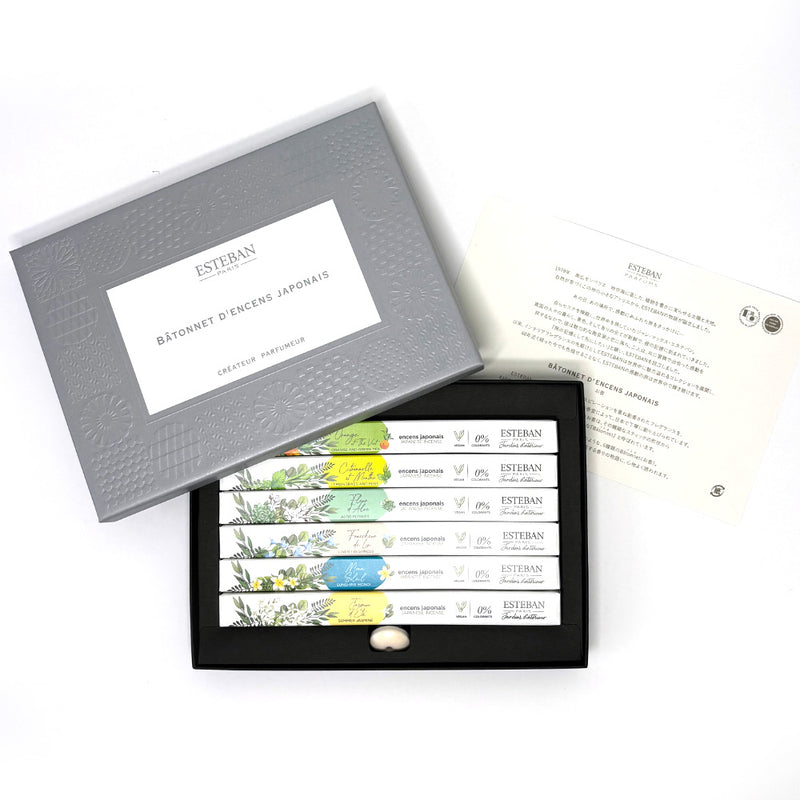 This beautiful gift set contains 6 different batonnet (Japanese incense) fragrances from ESTEBAN's Interior Garden Nature Collection: