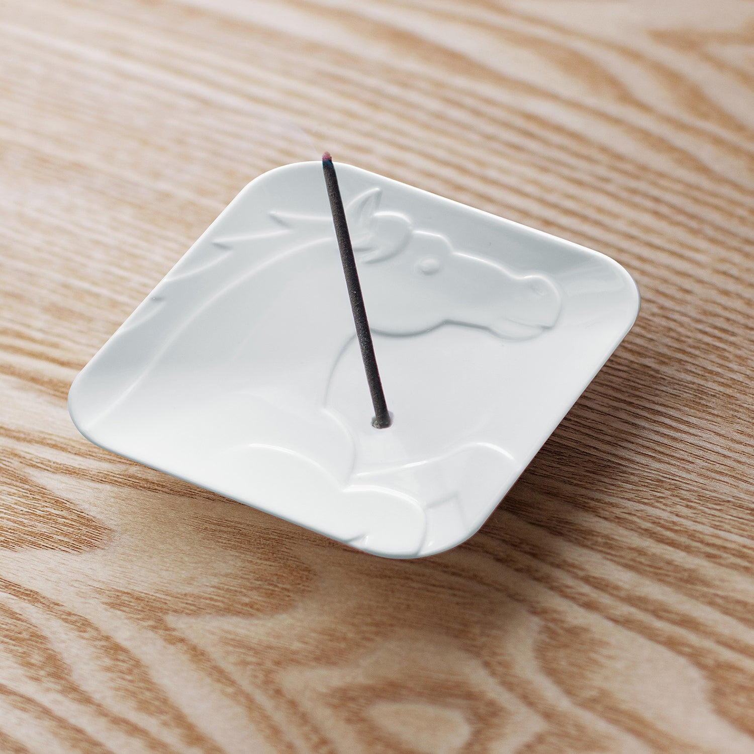 - Horse Incense Plate: Crafted by 224porcelain in Saga, Japan, using the centuries-old Arita ware technique. The raised horse design brings a tactile, elegant touch. Plate is the perfect size for short stick incense and includes a built-in hole to hold your incense stick.