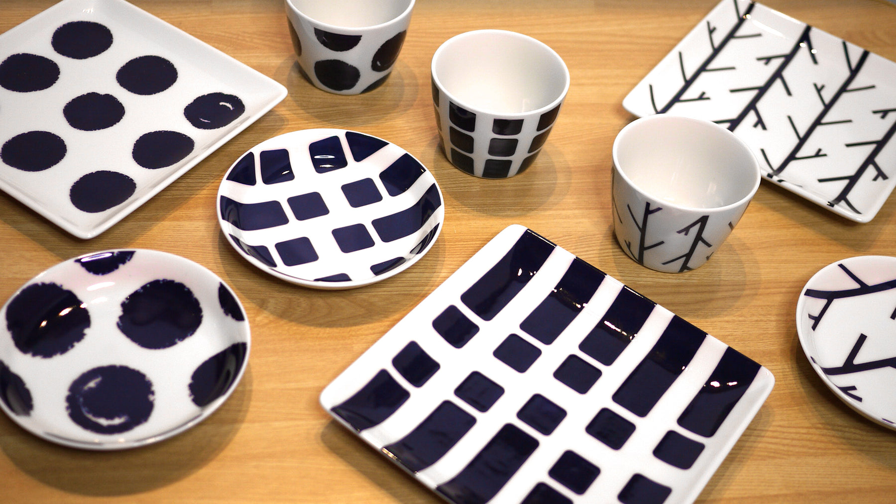 The Mod Motif Collection features tableware with abstract patterns in navy and white repurposed as incense plates. The size of each plate and cup are perfect for safely catching the ash while the design helps to create an elegant atmosphere to enjoy Nippon Kodo incense.
